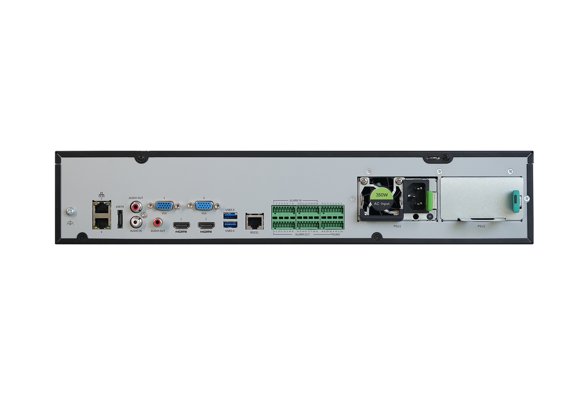 NVR508-32E-R/NVR508-64E-R: Front panel: 2 x USB2.0, Rear panel: 2 x USB3.0